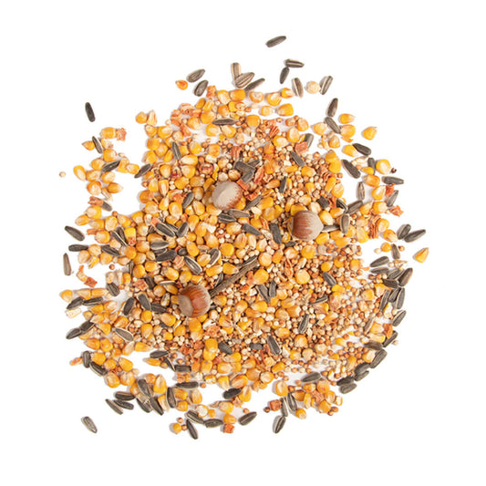 Voor eekhoorns bieden wij eekhoornvoer, een voedzame mix van maïs, gierst, hazelnoten, dennenappels met zaden, en gestreepte zonnebloempitten. Dit speciaal samengestelde voer is perfect voor deze nieuwsgierige en actieve dieren en zorgt ervoor dat ze in alle seizoenen goed gevoed blijven.
