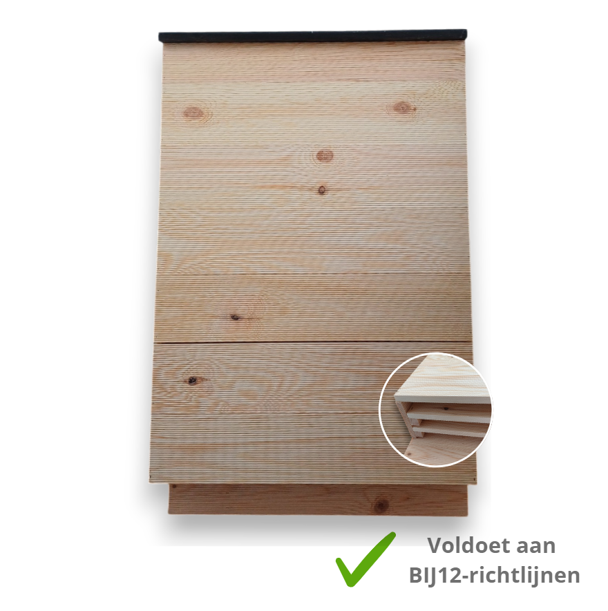 Deze vleermuiskast is speciaal ontwikkeld met de richtlijnen van BIJ12, voor de Gewone dwergvleermuis en de Ruige dwergvleermuis.